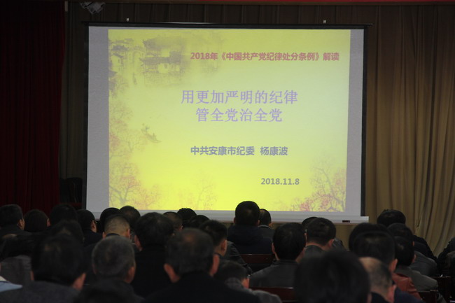 县委副书记蒋军主持培训会议。 培训会上,安康市纪委常委、秘书长杨康波以《用更加严明的纪律管全党治全党》为主题,对新修订的《中国共产党纪律处分条例》进行解读。先后讲解了《条例》修订的背景意义、历次修改的重要内容,列举大量典型案例,对新修订的重点内容结合当前工作实际情况进行了扩展讲解。整个培训深入浅出、务实管用,具有很强的针对性和实用性,对全县党员干部,尤其是纪检监察干部学习理解、贯彻执行《条例》具有重要的指导意义。
